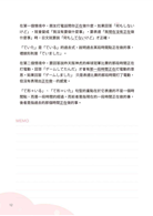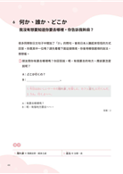 每一單元解說文法之後,提供情境練習題目供讀者驗證學習成果,只需花短短幾分鐘,就能檢核是否徹底內化吸收該單元內容。並且練習題置於右側單數頁,符合讀者寫作答題習慣,答案及詳解列於翻頁後的雙數頁,讀者在作答時可專心思考,翻頁再印證學習成效。