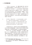 「考古學」(archaeology),是一個難以捉摸的字眼!就英文而言,這個詞語有兩種拼法,也有許多定義的方式(Cleator, 1976: 13-17,羅列出近乎三打的定義)。1 一九五○年版本的《美國大學詞典》(American College Dictionary)錯誤地把「考古學」一詞限定於尚未有文字出現以前的史前時代,而且只給這個學科一個解釋:「任何史前文化藉由挖掘和描述其遺跡所進行的科學研究。」羅伯特.布雷德伍德(Robert J. Braidwood, 1970: 223)構想了一個更廣泛的描述,同時涵蓋史前時代和歷史時代,以致為古典時代和許多近東地區的考古