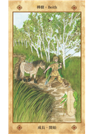拿起第一張牌卡,beith/樺樹,看著牌卡上的象徵意義。看著牌卡時,要記得每張牌卡都被注入了樹木的能量,如同我在第11頁上解釋過的。在這麼做的時候,我放在你手中的不只是一疊牌卡;反而是強大的占卜工具兼轉化蛻變的魔法工具。你現在可以讀取那股能量──要敞開自己迎向它。看著樺樹牌卡時,運用下述咒語請求它對你說話:
