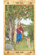 圖中有一個凱爾特部落的男孩,他的小馬滿載樺樹樹苗。他與小馬是工作夥伴,互助合作,彼此陪伴。年輕人穿著綠色和黃色,也就是春天和生長的顏色。他已經規劃了自己的冒險,帶著栽種全新人生旅程可能需要的所有物資。他的腰間有一把鏟子,代表準備努力工作,邁向目標。一隻鳥兒翱翔在頭頂上方,表示喜悅與神性的指引。