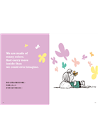 這次突破以往的漫畫包裝,封面採用麗奇映畫,經典水彩紋理搭配輕量塗佈層,有著深邃的手感紋路,覆印濃厚燙黑字體,呈現SNOOPY禪學的沉穩、定心。搭配方背硬殼精裝,不論收藏或餽贈,都極具價值。