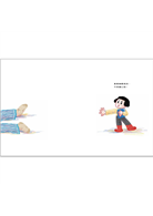 繪本《不用擔心我》就是一秒惹哭我的好哭故事。文字從孩子的觀點敘述,當媽媽發燒生病了,孩子用自己的經驗,想盡所有她能做到的方式,無微不至的照顧媽媽,就像媽媽平常照顧她那樣,食衣住行育樂樣樣齊全。尤其是反覆安慰媽媽「不用擔心我」,似乎是接收到媽媽心裡的話語,努力用行動要讓媽媽放心,更想證明自己有足夠的力氣守護媽媽。很喜歡作者為書中小孩穿上一雙半筒紅襪,它讓我聯想到原子小金剛,即便小小的,也可以很有力量。