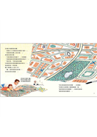 除了簡單的故事之外,這本書的大部分跨頁還包含幾個句子與地圖相關的訊息,例如:比...