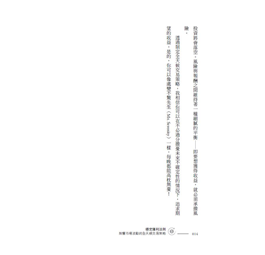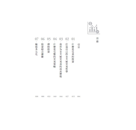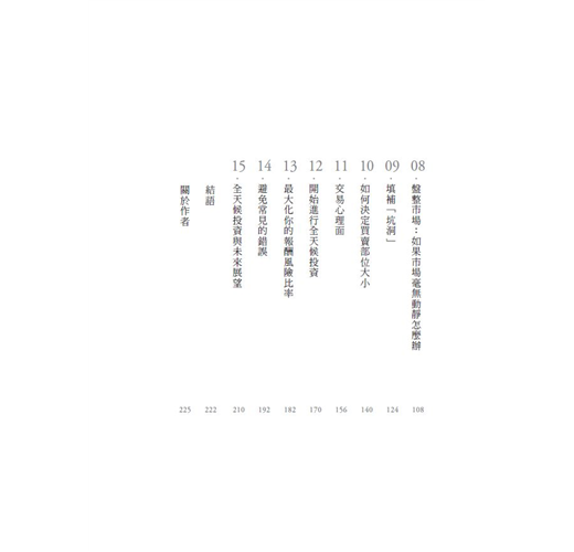 本書探討湯姆‧貝索的核心交易哲學,包括極致多元化、期貨交易與股票配置等創新理念。他透過實際案例展示如何建立與定制化投資組合,幫助投資者制定全面的策略,避免代價高昂的錯誤決策,並在各種市場環境下取得穩定的投資報酬。