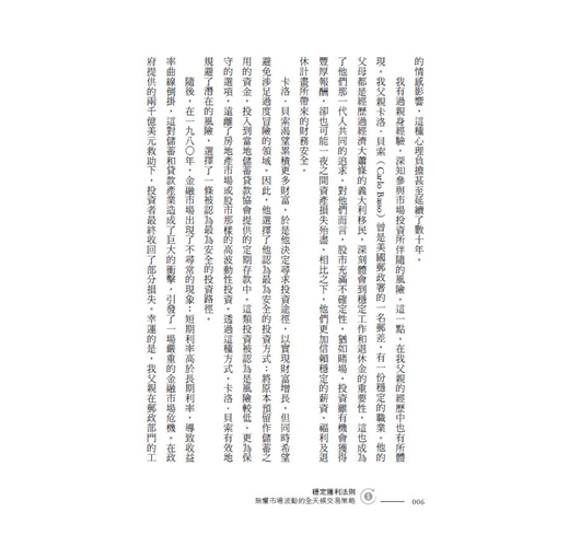 《穩定獲利法則:無懼市場波動的全天候交易策略》不僅是湯姆‧貝索多年市場經驗的總結,更是一本融合實戰智慧與理論的實用指南。透過作者的個人經驗和成功案例,讀者將學到如何在牛市、熊市與盤整市場中有效操作,運用風險創造長期財富。本書為追求財務自由的投資者提供了獨特的視角與堅實的框架。