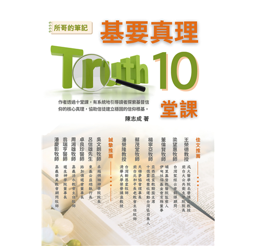 「這本筆記深入淺出,重點扼要,幫助讀者學習基督教核心真理,並提供實際應用的指引,值得好好研讀。」——張秉聰牧師(台北真道教會顧問牧師)