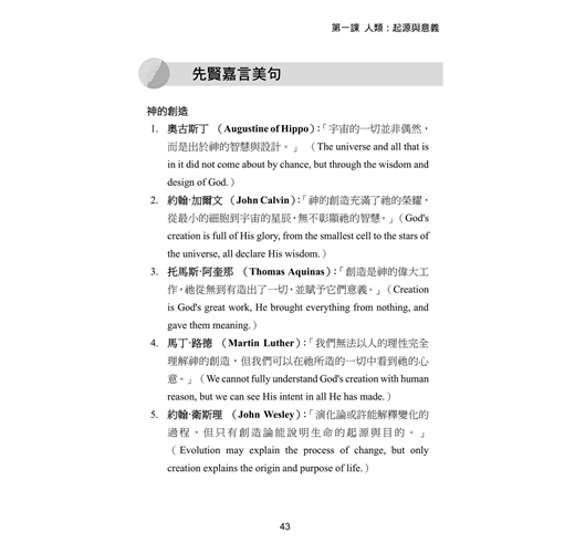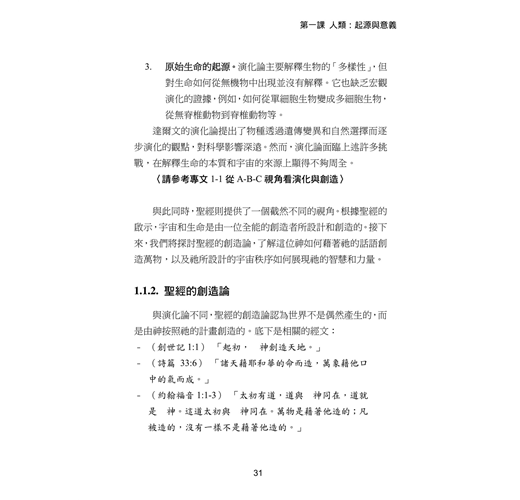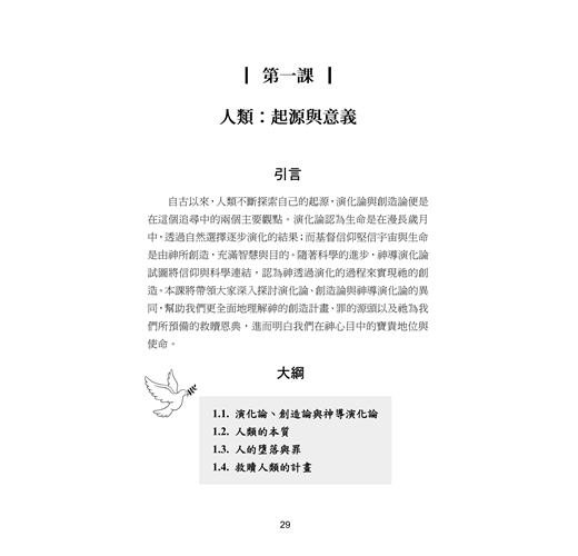 自古以來,人類不斷探索自己的起源,演化論與創造論便是在這個追尋中的兩個主要觀點。演化論認為生命是在漫長歲月中,透過自然選擇逐步演化的結果;而基督信仰堅信宇宙與生命是由神所創造,充滿智慧與目的。隨著科學的進步,神導演化論試圖將信仰與科學連結,認為神透過演化的過程來實現祂的創造。本課將帶領大家深入探討演化論、創造論與神導演化論的異同,幫助我們更全面地理解神的創造計畫 、罪的源頭以及祂為我們所預備的救贖恩典,進而明白我們在神心目中的寶貴地位與使命。