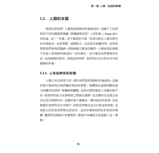 聖經告訴我們,人類是按照神的形像暱造的,這賦予了我們與眾不同的價值與尊嚴。根據神學家對「上帝形像」 Imago Dei)的討論,這一「形像」並不僅限於外貌,而是反映在人類本質中的多個面向,包括智慧、道德能力、自由意志與靈性等。這些特質使我們能夠認識神,並與祂建立親密的關係。人類也因此暱賦予在地上管理神所創造的一切的責任,這不僅是我們尊貴的印記,也是神聖的使命。透過這些特質,我們得以在日常生活中彰顯神的形像。