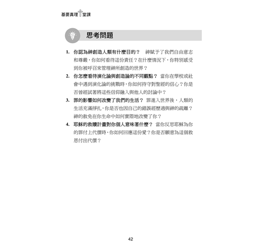 「本書不僅清晰地闡述基要真理,更附加了30篇針對信仰疑問的解答,使全書的可讀性臻於完美。」——吳麗芬牧師(路加傳道會總幹事)