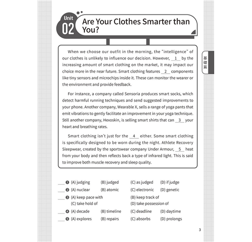 基礎篇 Basic Unit 01 All Roads Lead to Champagne Unit 02 Are Your Clothes Smarter than You? Unit 03 Doctor Peyo Unit 04 Street Art Unit 05 Food Delivery Services Unit 06 Trust Your Gut Unit 07 Electronic Sports Unit 08 Digital Nomads Unit 09 Stop Teasing Me! Unit 10 Turning Waste into Energy Unit 11 Every Beat of Our Hearts Unit 12 Punting in England Unit 13 Sitali Breathing Technique Unit 14 Be Careful about What You Click On Unit 15 Tug of War Un...