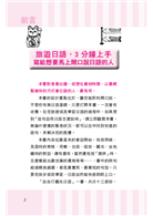 ◆本書內容豐富,每課內容包括「簡單會話句型」、「活用句」及「單字小百科」等3部份。