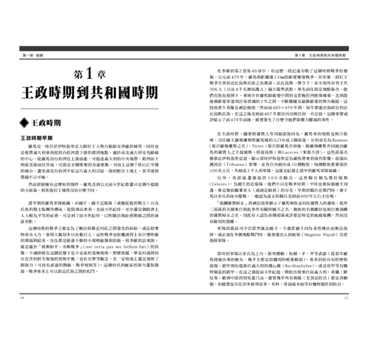 ◎專欄加附錄,內容超豐富:提供全羅馬軍團清單、拉丁文名詞解釋等資料,堪稱最完備的羅馬軍事資料集。