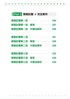 在研讀完句型及文法之後,可利用3回模擬試題測驗自我實力,並對照解答與解析,補強不足之處。