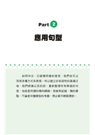 有了初步的文法基礎後,接著再配合本書歸納的「敬語」、「意志」、「委託」、「能力」、「許可」、 「授與」、「條件與假設」、「推測與判斷」……等應用句型,奠定更加深厚的文法實力,日語就可運用自如。
