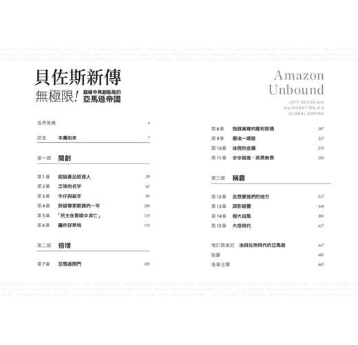 本書以詳盡、深入幕後的資訊,及時地為我們講述當代這個重要而精采的企業故事,帶領讀者完整了解貝佐斯和現代人已經離不開的亞馬遜帝國。