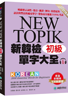 《新韓檢單字大全-初級》收錄單字約2,000多個,有一套嚴格的單字篩選標準。必須是韓國九所大學附設韓語教育機構與私人補習班兩個地方超過三所教育機構使用的單字,同時與TOPIK考古題交叉比對過後,曾出現於考古題中的單字,旨在幫助學習者掌握最基本的韓語詞彙。