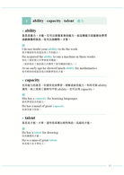 書中所收錄的219組字、共計500多個單字,都是日常生活中的常見單字。選擇各組單字時,主要從學習者的實際需要出發,不局限於同義字而是著重收錄一些一般不認為是同義字、只是中文母語者使用上容易混淆的單字。