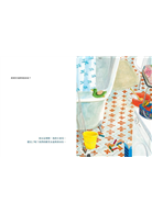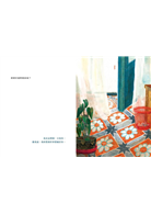 翻開本書的第一頁,映入眼簾的是寂靜的家中角落。房內鋪著橘紅色地磚,花朵圖案點綴其上,地上擺著一盆生氣盎然的心型葉植物。明亮的陽光透過半開的藍綠色木門傾瀉而下,白色紗簾在微風中輕輕飄動。