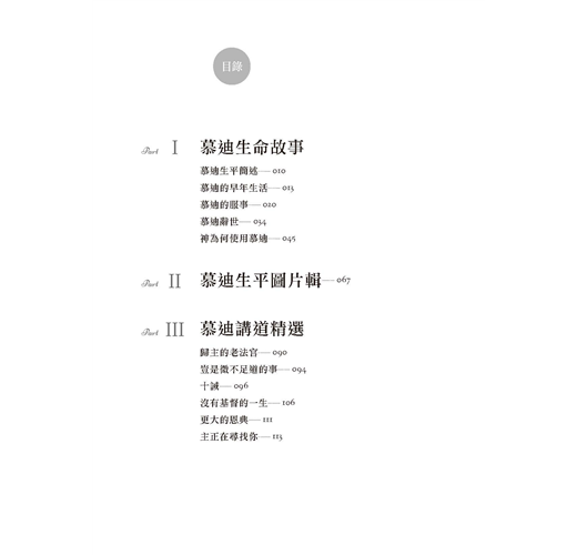 本書由美國康福特牧師,簡扼講述了慕迪的見證故事,並精選節錄了近二十篇慕迪的講道內容,引導我們追求更深刻的屬靈經驗,渴慕為主而活的生命。