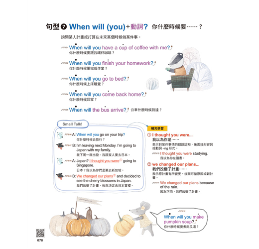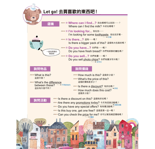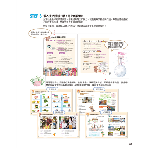 透過符合生活情境的實景照片、對話場景,讓學習更有感!不只是學習句型,更是學習如何在真實對話中靈活運用,從閱讀到開口說,讓你真正能活學活用!