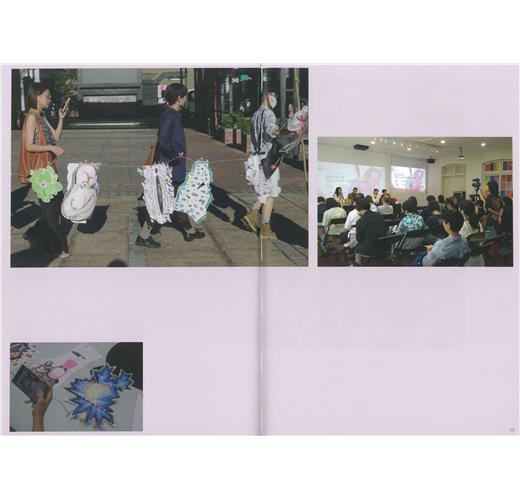 修復主題,尋找自我或彼此的療癒、鍛鍊與支持,為未來世代調整我們的身心體質與環境。展場中,鄒欣寧、高俊宏《你的樹盟友》有機分佈,尋找夥伴一起與樹親近,藉此放下自我、人類中心,並引領我們來到《日常學 電影院》,女性自我代表團+廖建忠共創的影像劇場空間。在這裡從空間建構,到觀影、說影,看見、被看,都是一種再摸索,讓日常的力場顯影;於此吳俞萱《影詩沙龍》發生,直觀影像與詩文,解散發言權力,於是我們修復自己、彼此修復。此外,Lihan.umaw 游恩恩+Temu.masin 徐智文的表演《毛茸茸的身體線索》讓身體遭遇性別,不斷破壞與建構,鍛鍊修復的肌力;李慈湄《意識與聆聽-集體合聲之網》從有意識的聆聽、聲音現身到集體發聲,重新連結內在並形成培力的聲音之網;而市村美佐子帶領《「恐懼,釋放吧」:女性無住屋者藝術實踐分享&紙偶製作工作坊》,探討存在於跨越各種社會階層的顯性、隱性暴力,以「無」為賦形之道,鬆動私公之間的韌性。