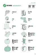 字母學成後,如果沒有意義,要記並不容易。所以每單元書中習字帖的右頁,馬上有用所學字母拼出來的越文單字,並且有該單字的圖解以加深記憶。不但能學到新的單字,也能在學單字的同時,依其結構強化對字母的熟悉度。