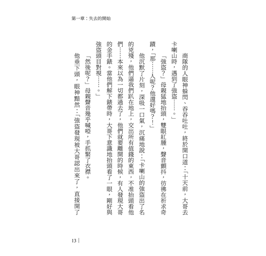 商隊的人眼神躲閃、吞吞吐吐,終於開口道:「十天前,大哥去卡喇山時,遇到了強盜……。」