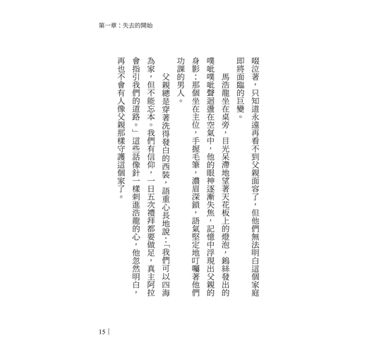 父親總是穿著洗得發白的西裝,語重心長地說:「我們可以四海為家,但不能忘本。我們有信仰,一日五次禮拜都要做足,真主阿拉會指引我們的道路。」這些話像針一樣刺進浩龍的心,他忽然明白,再也不會有人像父親那樣守護這個家了。