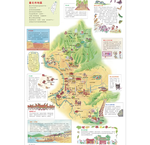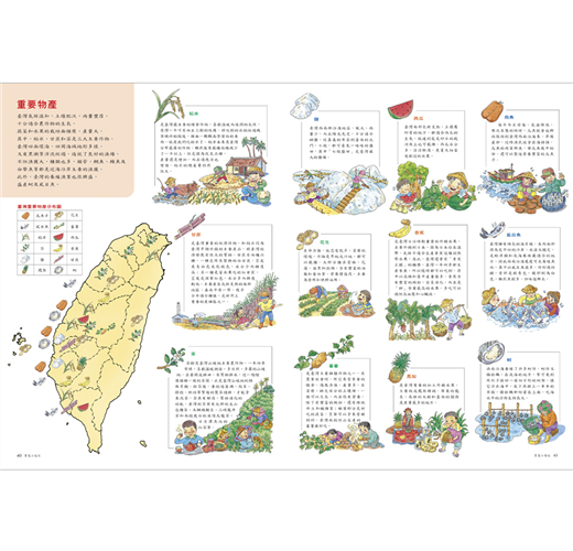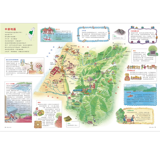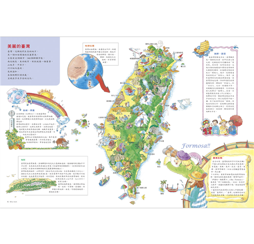 全書大開本設計,深入淺出的內容,細緻生動的全彩跨頁圖,帶孩子從我們居住的這塊土地出發,飽覽臺灣獨有的地理景觀,體驗各地不同的風土民情,了解居民與土地互動的生活面貌,讓孩子身歷其境遨遊在地圖書中,培養「愛鄉愛土」的真摯情感,深入認識臺灣之美,進而愛上寶島。