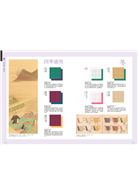 黃橡×白群×弁柄色.玉子色×珊瑚色×鈍色.花葉色×白綠×呂色.藤黃×鐵紺色.鬱金色×錆鐵御納戶.玉蜀黍色×黃土色×牡丹.黃蘗×芥子色×桃色