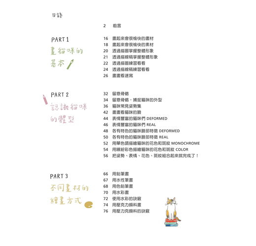 使用簡單的工具結合貓咪可愛的表情、靈活的姿勢以及獨特的圖案和臉部特徵,像不像三分樣,栩栩如生的貓咪簡筆畫就是這麼簡單易上手,跟著本書享受畫貓的樂趣。