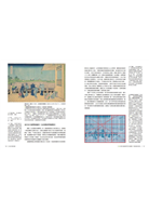 另外,書中還能見到對熟悉和服的人來說不陌生的「立涌」圖樣的嶄新變化。立涌是奈良時代自中國傳入、誕生於貴族社會的有職圖樣之一。圖樣中可見縱向的波浪線規則性地排列,其中鼓起來的區塊內還會加入雲、波浪、唐花、牡丹、紫藤等圖案,是經常使用於江戶小紋或西陣織等平安時代以後的織品上的傳統圖樣。立涌圖樣富有韻律感且相當高雅,能襯托出帶有光澤的織品,經常被用於腰帶的紋路上;此外,新娘禮服白無垢的掛下帶採用的也是菊花的立涌圖樣。北齋女兒描繪的美人畫中,也可見立涌圖樣,是女性偏好的華麗傳統花紋;不過北齋大膽地將這個圖樣加以變化,使其呈現出現代風格,對於當時社會女性使用的腰帶來說感覺太過前衛。北齋的設計反而是近似1970年代影響了全球的歐普藝術(1931-),特別是與英國女畫家布莉姬•萊利(Bridget Riley)備受矚目、帶給人晃動感的早期作品極為相似。北齋的品味出眾,他聚焦於立涌圖樣的韻律感上,將其進一步發揮,堪稱當時的異色設計。