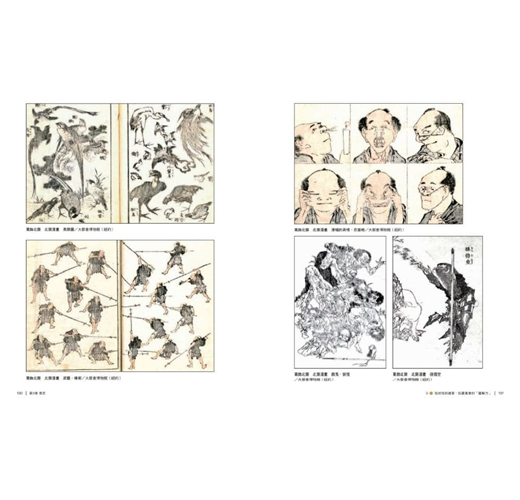 *1「北齋漫畫」 是北齋自1814年開始創作、共計15卷的繪本作品(譯註:有別於現代繪本,江戶時代繪本指的是以圖畫為主的一般通俗書籍),內容雖是作畫用的參考範本,但實際上帶給人的印象,更接近活靈活現地描繪出森羅萬象的圖鑑。繪本中雖然沒有現代漫畫中的分格畫面、故事性以及對話泡泡中的台詞,仍極富幽默感。根據學習院大學名譽教授小林忠教授的解說,在漢文典籍中,「漫畫」這個詞彙最初的意義與現在不同,在北齋之前,不曾有人為繪本下過「漫繪」(漫ろな絵)這樣的標題,在《北齋漫畫》第一卷的序文中,也可見其他人所撰寫的序文中,提及北齋是第一個使用這個詞彙的人,因此北齋也可說是現代漫畫的鼻祖。由於《北齋漫畫》內容廣受好評,在北齋過世後其遺稿被彙整為15卷作品,流傳至明治時代,後續並可見《光琳漫畫》、《曉齋漫畫》等同類型作品。