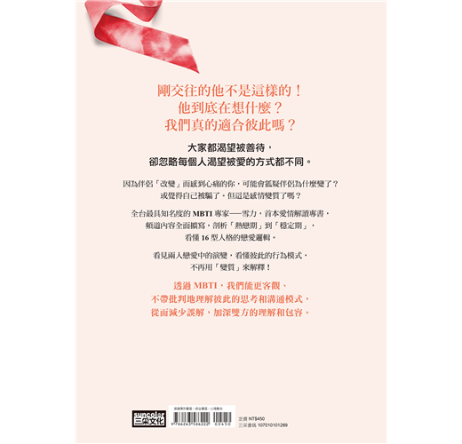 雪力深入剖析16類型的熱戀期和穩定期,讓你看見兩人戀愛中的演變,看懂彼此的行為模式,不再用「變質」來解釋!