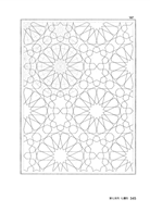 3. 裝飾圖案(Ornements):可以分為造型裝飾(如建築構件與懸垂石)、線條裝飾(如交織紋),以及專指的裝飾圖案,如刺繡花飾、平面或輪廓裝飾。專指的裝飾圖案僅由少數平面切割的玫瑰花飾元素構成*注:以少數線條元素經過重複、拼接、旋轉、鏡像等方式,組成複雜富有變化的裝飾圖案。這些輪廓完全以界定它們的線條來描繪,極具特色;它們既不像歐洲人塑造立體造型的包覆輪廓,也不像中-日藝術用來描畫物體輪廓的流動線條。阿拉伯裝飾完全是由線條的盤旋和纏繞所構成。