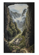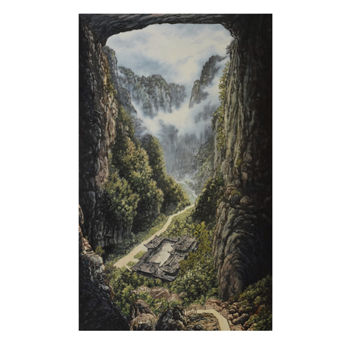 以山為德,水為性的涵養心智作為山水畫進展的中心,藉筆墨寫繪山川來愉悅自我,陶冶情懷,所呈現出的山水畫立意雋永,趨向氣韻生動。不少山水畫家都將山作為心性與修養的棲息地,在山林中畫畫,以此來提升意境,用手中筆墨寫繪山水,飽含著審美情趣和自然造化。藉由作品以其饒富生趣的畫面,令觀者徜徉在視覺美學情境之中,感受創作者的精神與內涵。這已不單單是對繪畫的一種追求,更是融入了自己對山川的感悟,憑藉內心從容不迫的創作去寫繪。如此的畫作氤氲蔥鬱、秀美雋永、意境幽遠,筆到意隨,自然流露對山水真實的感覺。蘇軾〈題西林壁〉所言:「橫看成嶺側成峰,遠近高低各不同。」一樣是山,視角不同,形象感受也不同。而自己的山水畫中,山水之間也存在著不同的意境,既能以細緻的方式表現秀美的風格,也能用厚重的筆墨顯現宏壯的氣韻。在意境上追求含蓄與深邃美,於細密秀潤行筆裡,顯出蒼厚華潤和灑脫清新的意韻,寓意蔥鬱自然。人與自然契合,作畫時所表現的畫面即可逐步邁向氣韻生動。筆者覺得山水畫是心靈的寄託,也是內心真摯的反應,可以說是性情的歸宿,靈魂的棲息地,人性的本質供給。因此山水畫是對真實山水的概括總結,畫中山水若掌握真山水的本質,即是掌握了道,所表現出來的意象及藝術,就是要表現自然之道。畫論講的「游於藝」,可說是真正的藝術態度。期待自己作品在保持傳統的筆法墨法與結合水墨畫的意境時,能夠漸漸地體現出磅礡的大氣,使觀者在引起心底漣漪以後,覺得餘韻猶存,以心感物,神與物游。
