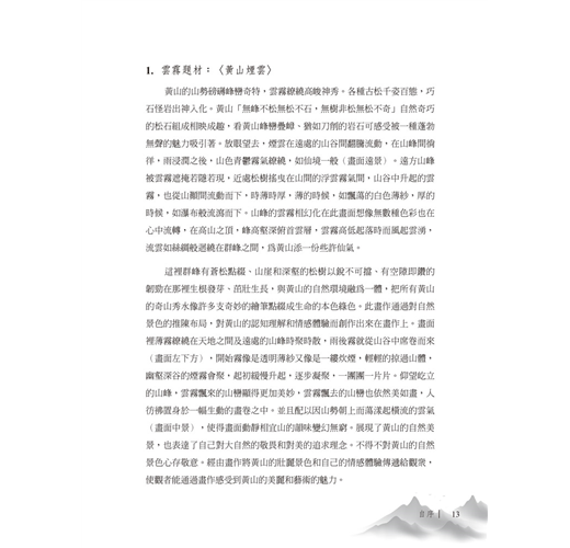 在中國繪畫史上,山水畫擁有獨樹一格的審美理想,在宋代時,是可行、可望、可游、可居之境;在元代以後,畫家的感受漸漸超出於自然之上,有鑑於歷代累積的畫作為其根源,畫家在不必外求現實的情況下,就足夠創作出比自然更完美或是更符合心境的作品。