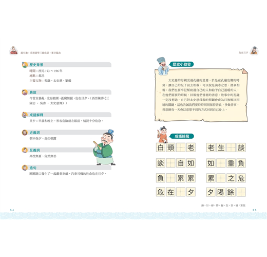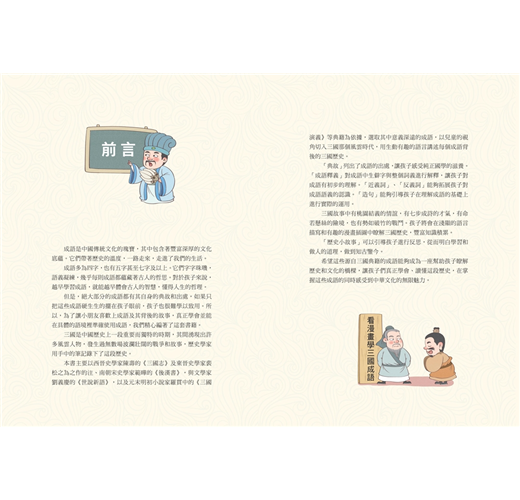 三國時期的人物各個擁有鮮明特色,在紛亂的局勢裡更發生了許多戲劇性與傳奇性故事,是必讀的「四大名著」之一。這些經典故事裡衍生出的成語,讓人印象深刻,不用刻意學習,就能深植腦中。