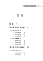 本書的結構分為七章,首先從人類文明升級入手,提出市商文明作為經濟發展的核心邏輯,進而探討市商文明的維度,包括平等自由、私產私權及契約信用等三大核心維度。接著,作者深入剖析易利創富的邏輯,從和平取向與戰爭趨向兩個角度,討論文明升級的分歧。