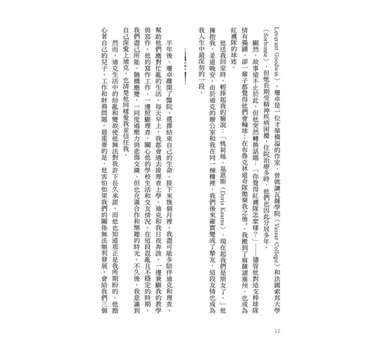 「一個人不僅僅是作為個體而活,同時也有意識或無意識地承載所處時代的印記,與同時代的人們共鳴、共振。」桃莉絲發揮歷史學家本色,以先生迪克為研究材料,帶領讀者回到一九六〇年代的關鍵時刻,與當年的重要參與者建立聯繫。也重新審視當時身處時代洪流之中的核心人物——甘迺迪總統、第一夫人賈桂琳、馬丁.路德.金恩、羅伯特.甘迺迪、尤金.麥卡錫等,特別是對他們的生命有著深遠影響的詹森總統。這趟紀念之旅帶來了意想不到的發現,既是寬恕和對過往美國夢的重新定義,是屬於個人的愛情故事,也重燃了新世代人們與美國繼續這段未竟之戀的理想之光。