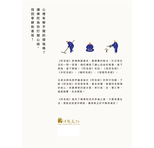 《阿含經》是最重要的原始佛教經典,我們雖然無法生值佛世,卻可以透過閱讀《阿含經》,宛如跟著五百大阿羅漢,一起圍繞著佛陀聽法。質樸簡要的法義,能直接觸動我們的心,喚醒內在的覺性,解脫自在不再遙不可及。