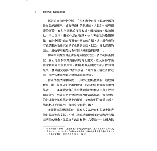 鄧嗣禹提筆記下的「重訪中國」,原稿是英文,明顯是為了向當時還在霧裡看花的西方世界,介紹文革發生後的當代中國樣貌。因此這本遊記可說是傳統的中國與現代的美國,兩種世界觀綜合後產出的寶貴紀錄。