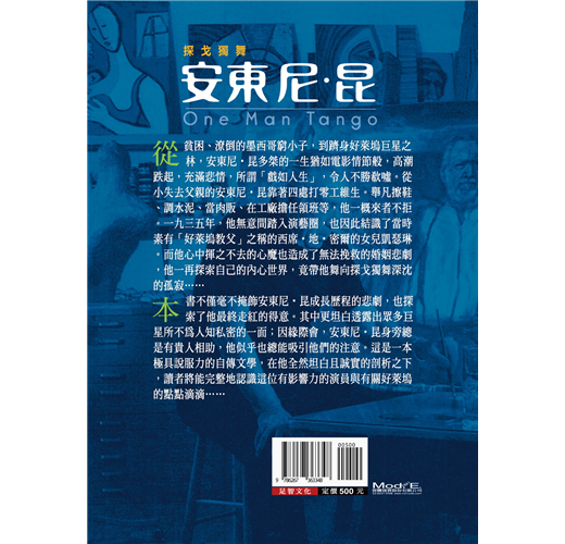 而他心中揮之不去的心魔也造成了無法挽救的婚姻悲劇,他一再探索自己的內心世界,竟帶他舞向探戈獨舞深沈的孤寂……,本書不僅毫不掩飾安東尼‧昆成長歷程的悲劇,也探索了他最終走紅的得意。其中更坦白透露出眾多巨星所不為人知私密的一面;諸如賈利‧吉柏、馬龍‧白蘭度、尤‧勃連納、瑪麗蓮夢露等人,以及安東尼‧昆與某些女星(麗泰‧海華絲、英格麗‧褒曼……)的風流韻事。