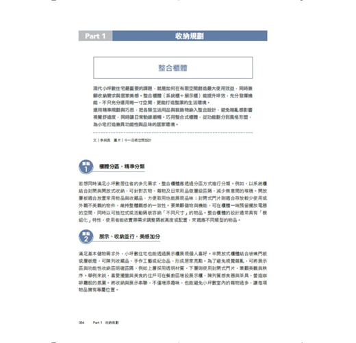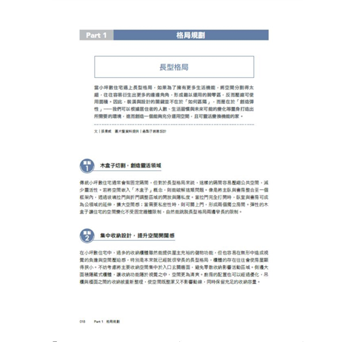 無論是一房、長型、多房格局,或是單身、家庭、銀髮族等不同使用者需求,本書皆提供對應的空間規劃策略與設計實例,幫助設計師與使用者根據條件量身打造最適合的小宅空間。
