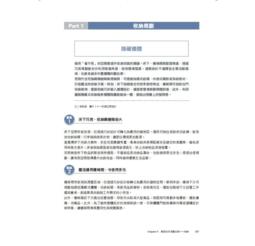 從格局安排、彈性隔間、收納配置、照明策略、家具尺寸到空間整合,系統整理設計師實戰經驗,搭配實景案例,讓你輕鬆掌握規劃邏輯,提升整體空間質感與機能。