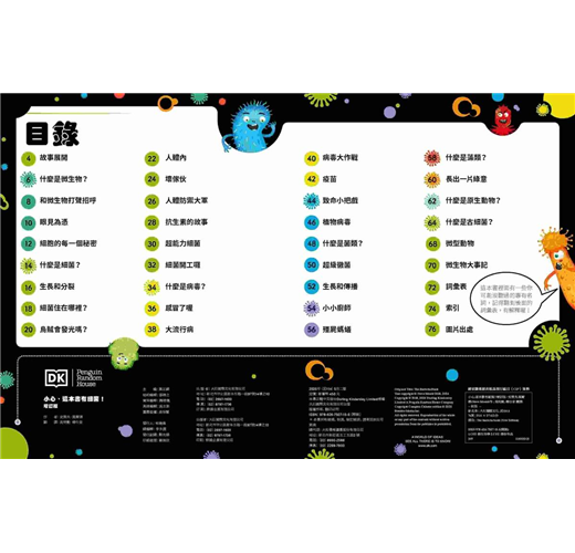 現在就翻開這本有趣的微生物學小百科,仔細看看小朋友一定要認識的細菌、病毒和其他微生物吧!