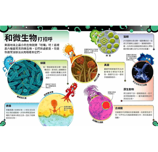 以精準的圖解和可愛逗趣的插畫,讓小朋友一看就懂微生物的行為和生活史。