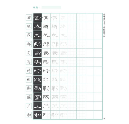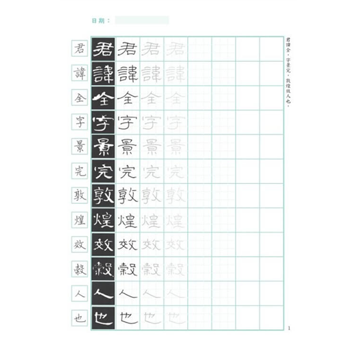 精心設計頁面,讓讀者能同時欣賞〈曹全碑〉原帖筆跡之美,並在同一頁面以硬筆進行逐字臨寫,兼具藝術欣賞與實踐學習的雙重價值。以糊頭攤平設計方式,方便逐頁臨寫不卡手,可撕可保存。