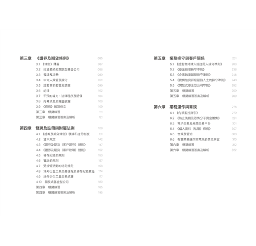 後來,筆者自行編製了一些針對證券考試的練習題,重新總結出更精簡的講義,按照個人對考試內容的理解錄製了影片,又自建了網上學習系統,將這些內容放到線上供其他人研習,滿足了考生電子化學習的需要,但依然有不少人反映喜歡看紙質書籍,認為電子資料存在諸如不便做筆記等缺點。為了滿足大家的需求,筆者團隊整理了電子資料中的一部分精華,出版了這本書。