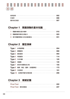 「多項選擇題」、「標題配對題」、「資訊配對題」、「特點配對題」、「句末判斷題」、「判斷題」、「辨別作者觀點或立場題」、「摘要、筆記、圖表、流程圖填空題」、「句型填空題」、「在限制內字數以內回答的問題」共十個題目類型進行解題。每個題型都有一到兩組練習題「Exercise」,跟著指示解題,考試一定無往不利!